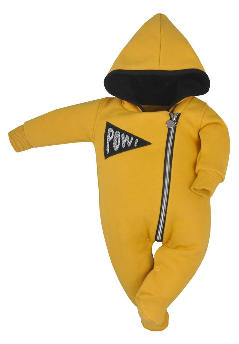 Apraksts Zīdaiņu kokvilnas rāpulītis ar piedurknēm "Pow mustard"