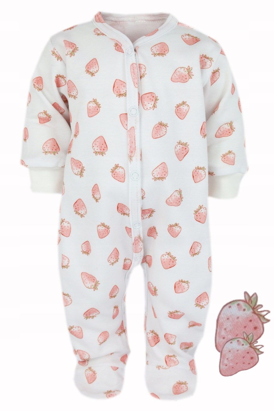 Mīksts un ērts kokvilnas bērnu kombinezons ar mīlīgu zemeņu rakstu. Šis burvīgais tērps nodrošinās jūsu mazuļa komfortu visas dienas garumā – izgatavots no mīkstas, elpojošas kokvilnas, kas ir ideāli piemērota mazuļa jutīgajai ādai. Zemenes piešķir rotaļīgumu, savukārt ērtais griezums nodrošina kustību brīvību. Lieliska izvēle ikdienas valkāšanai, spēlēm un gulēšanai!
