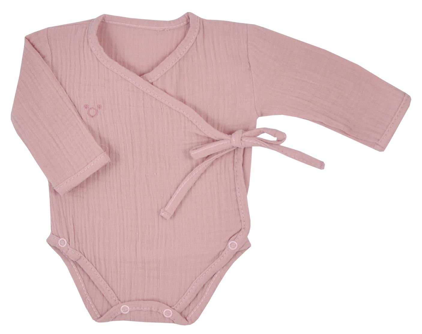 Apraksts Bodijs ar garām piedurknēm no muslīna kokvilnas "Silky" rozā